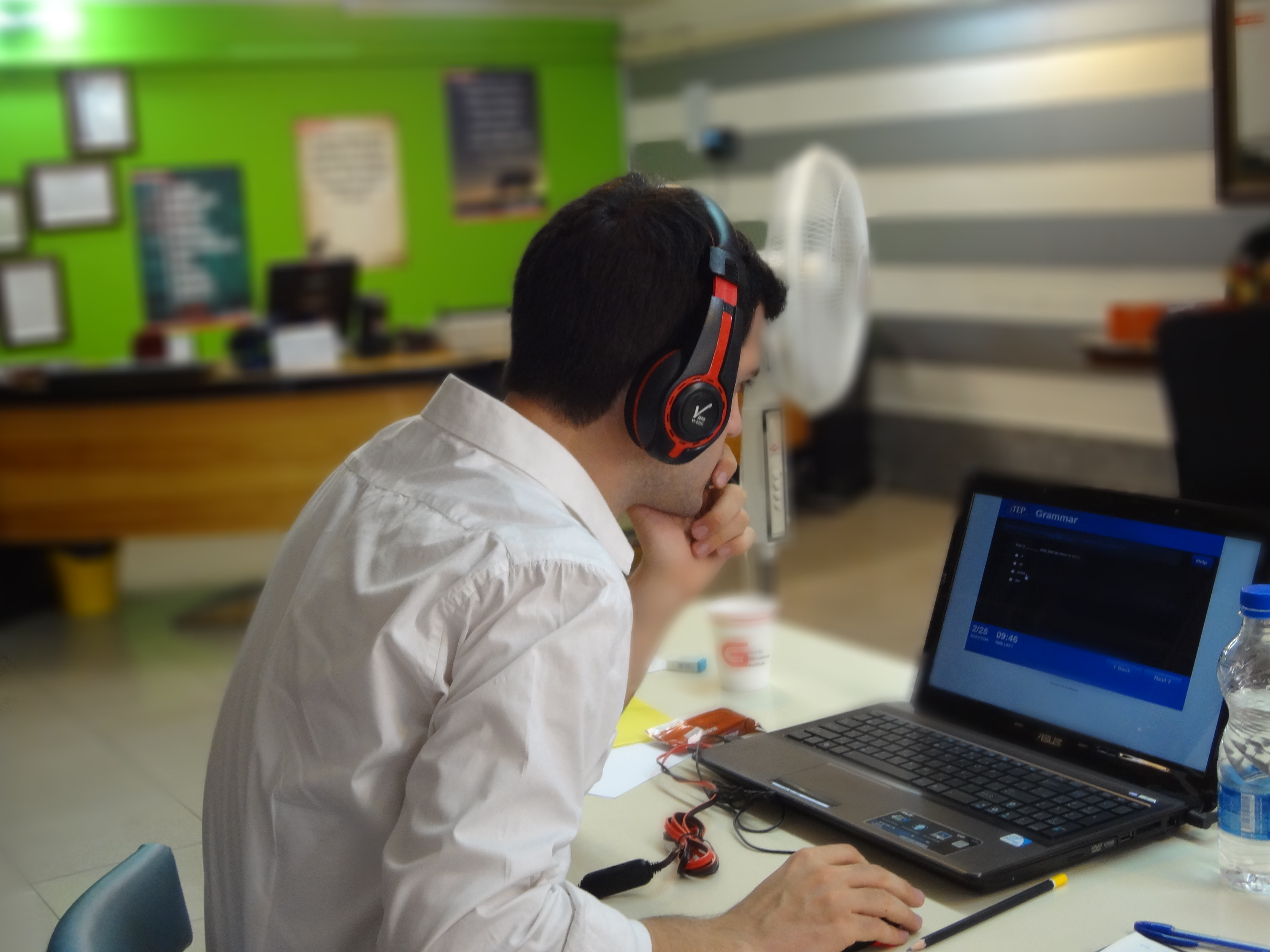 During the iTEP listening section of iTEP, you will hear a conversation or lecture and then answer questions about it on the screen. Each conversation or lecture is played only once, but you can take notes while listening.
